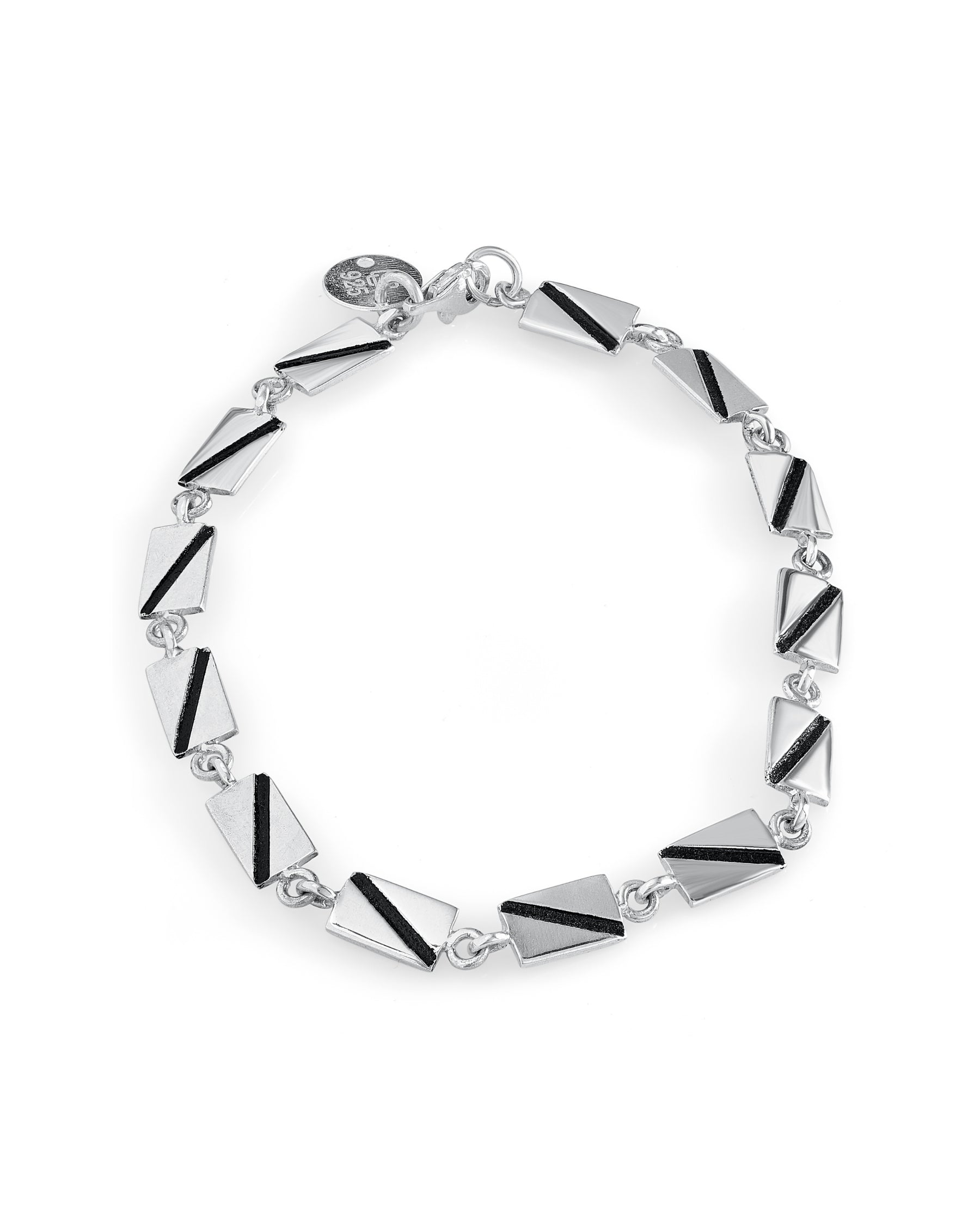 Elevate your everyday look with Link Prism, a bracelet that fuses modern edge with masterful craftsmanship. Each link is crafted from premium 925 sterling silver, featuring a sharp diagonal black line that adds a bold, architectural vibe.