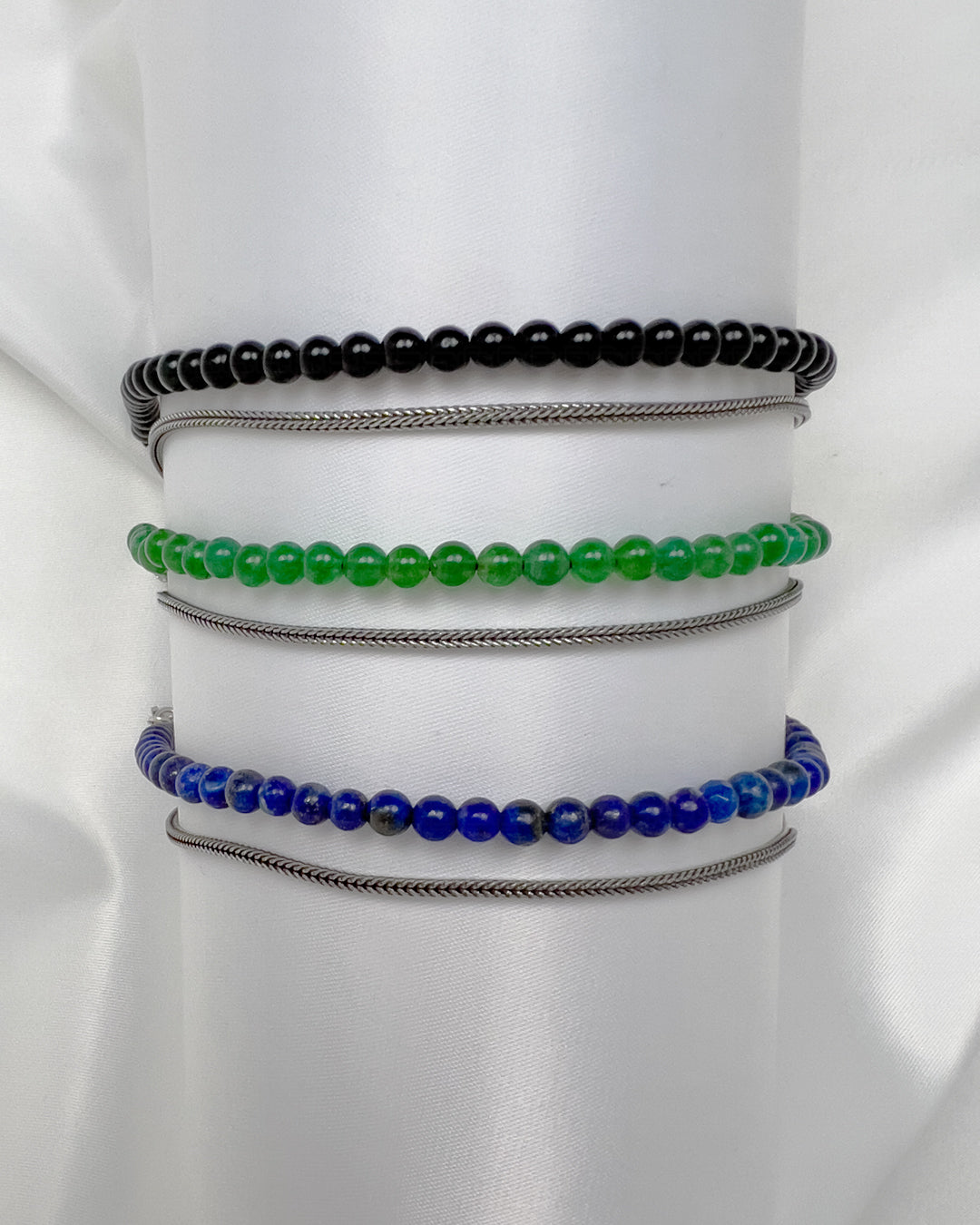 Black Onyx is a striking, deep-black gemstone known for its smooth surface and natural luster. Often associated with strength and protection, it has been used in jewelry and carvings for centuries. Its bold, elegant appearance makes it a timeless choice for both modern and classic designs.