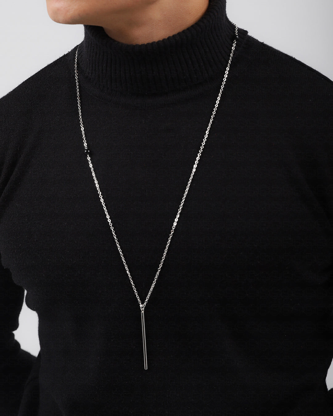 Featuring a sleek silver bar pendant, this necklace is a true classic. Whether you're dressing up for a special event or just want to add a touch of elegance to your everyday look, this necklace is the perfect choice.