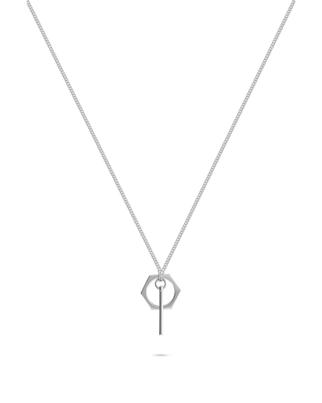 Sterling Silver 925K Necklace With Bar and Hexagon Pendant with Platinum-Plated